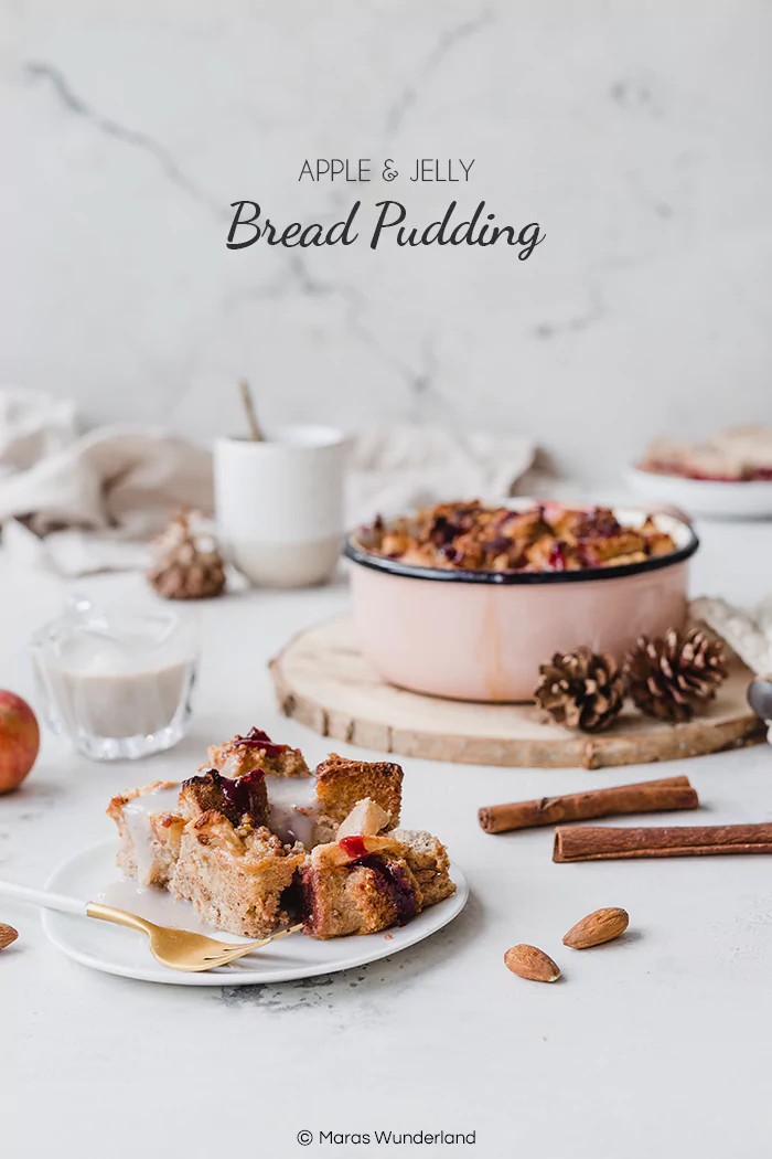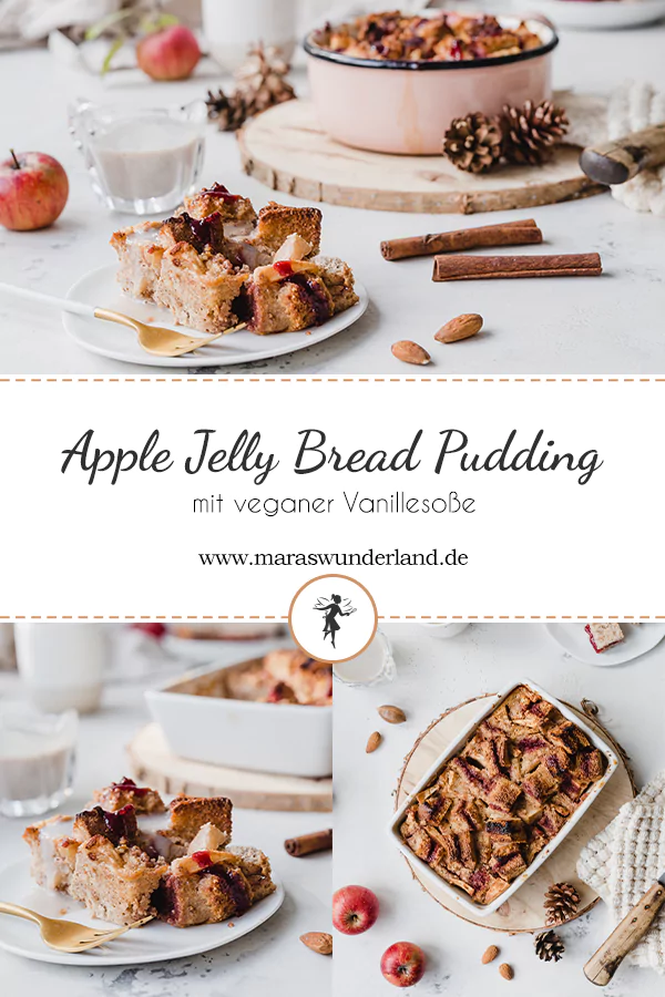 Rezept: Jelly Apple Bread Pudding – Ofenschlupfer mit Bratapfel, Marmelade & veganer Vanillesoße