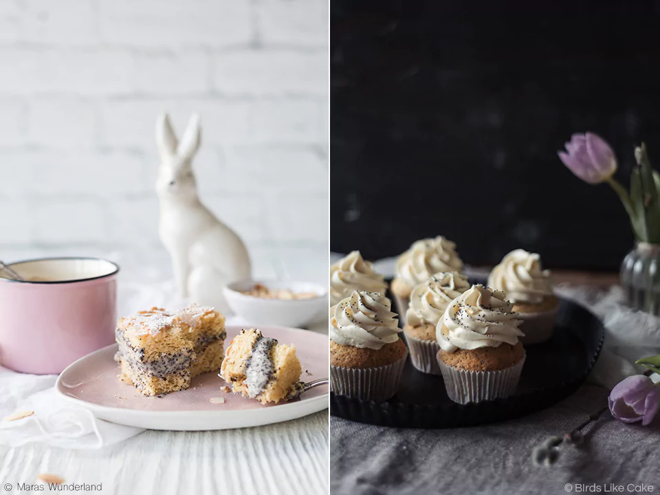 Unsere nächste Zutat: Mohn! Wir finden er passt perfekt zur Osterzeit und hoffen, dass ihr ihn genauso sehr liebt wie wir. Denn wir haben wieder zwei herrliche Mohn-Varianten für euch gezaubert. Bei Birds Like Cake findet ihr Mohn-Marzipan-Cupcakes*. Ich kredenze euch Mohn-Bienenstich. Enjoy!